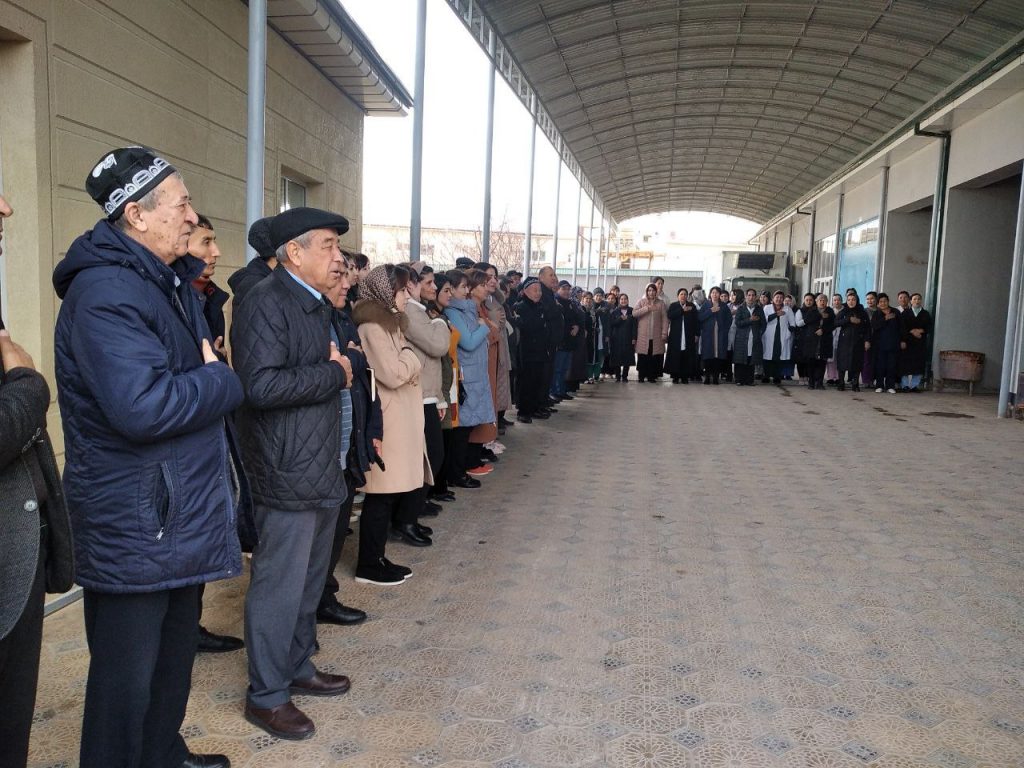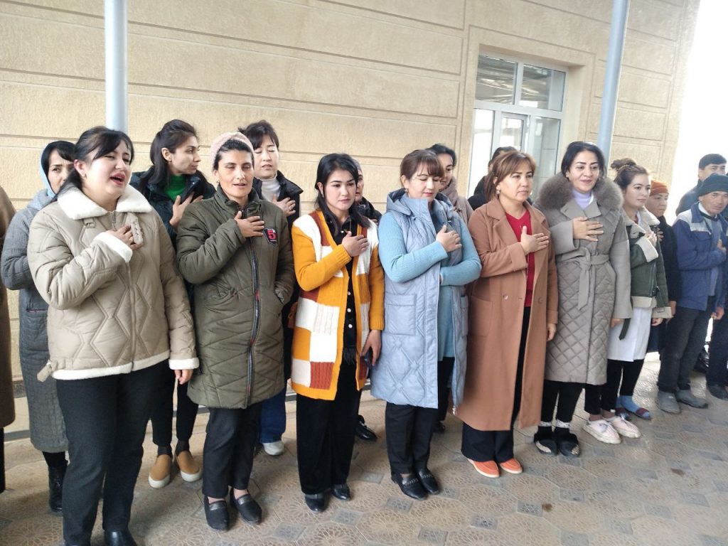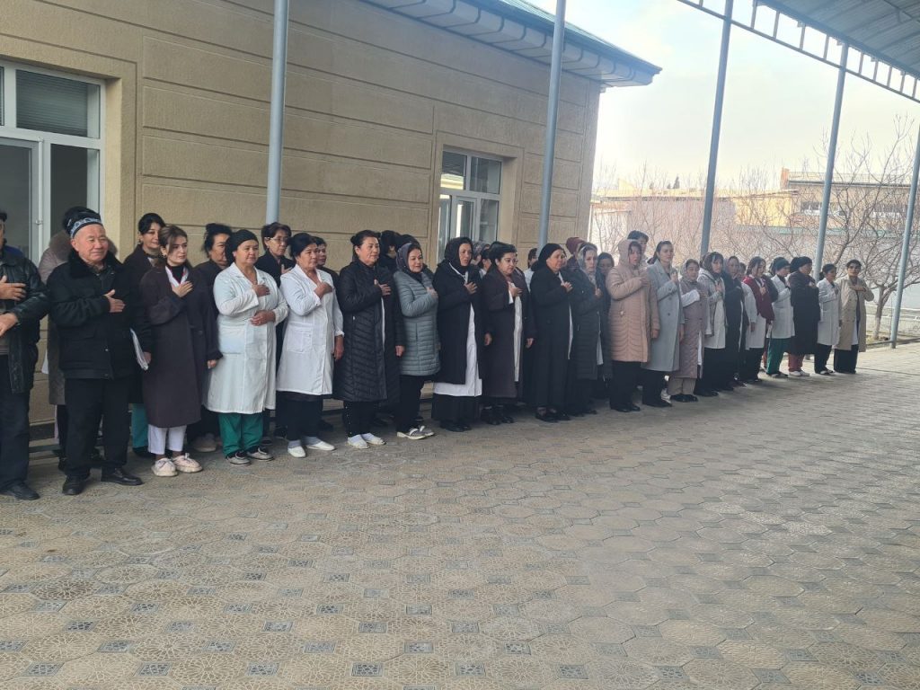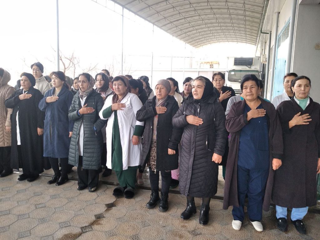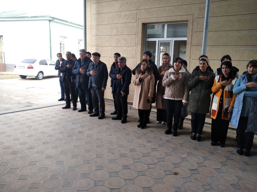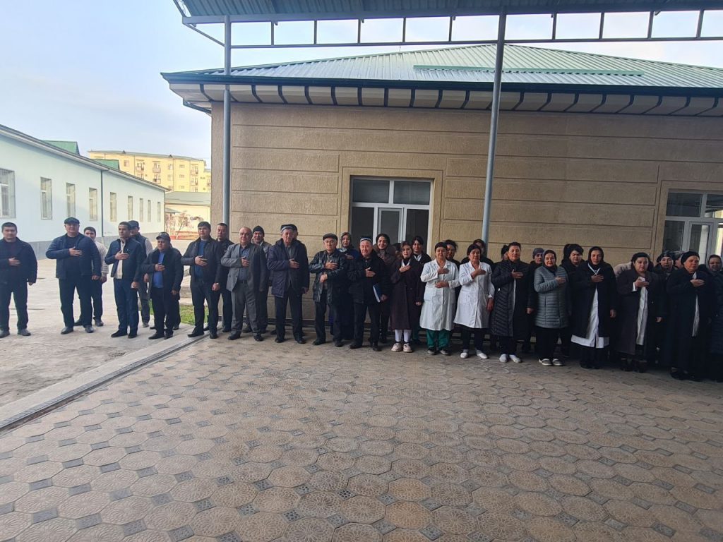 Foto: viloyat SEO va JS boshqarmasi ishchi xodimlari Davlat madhiyasini ijro etish jarayonlari.