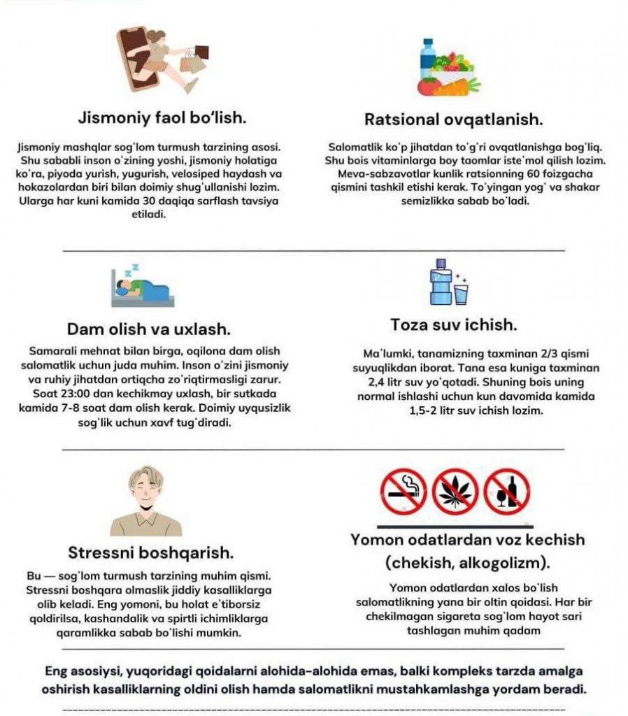 ????Sog‘ligingizga befarq bo‘lmasangiz, yuqoridagi tavsiyalarga amal qiling!