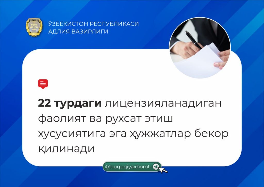 ????litsenziya yoki ruxsat etish xususiyatiga ega hujjatni berish jarayonida video aloqa vositalari yordamida talabgorlarning litsenziya va ruxsat etish xususiyatiga ega hujjatlar talab va shartlariga muvofiqligini masofadan turib baholash tartibi joriy etiladi;
