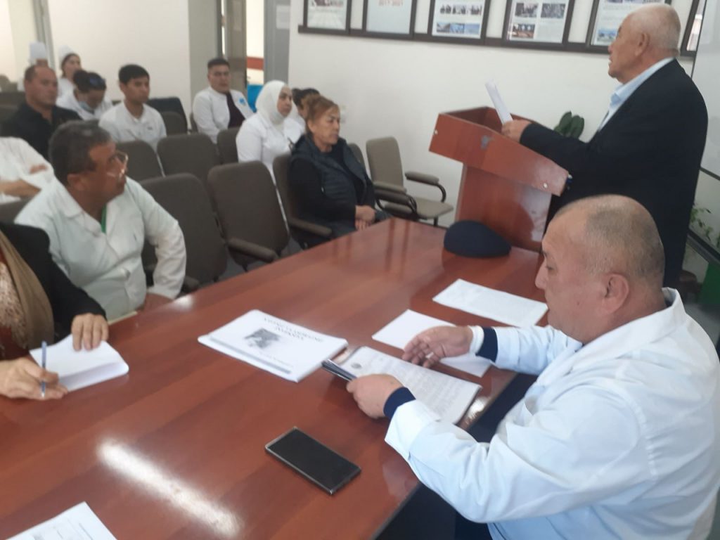Ўзбекистон Республикаси Бош давлат санитария врачининг 2024 йил 29-октябрдаги «Жорий йилнинг ноябр-декабр ойларида алохида «Хавфсиз тиббий муолажа» тадбирларини ўтказиш тўғрисида»ги 01-8/1055-сон Кўрсатма хати ижроси бўйича вилоят ССБнинг 2024 йил 5-ноябрдаги №155-Т-сонли буйруғи билан вилоят СЭО ва ЖСБ врач эпидемиологи Х.Хуррамов ҳамда Вилоят ОИТСга қарши кураш маркази врач эпидемиологи М.Ярбобоев вилоят Стоматология поликлиникасига «Хавфсиз тиббий муолажа» тадбирларига риоя этилиши ўрганилди. Аниқланган камчиликларни бартараф этиш учун амалий ва услубий ёрдамлар берилди. Вилоят Стоматология поликлиника мутахассислари иштирокида семинар ўтказилди.
