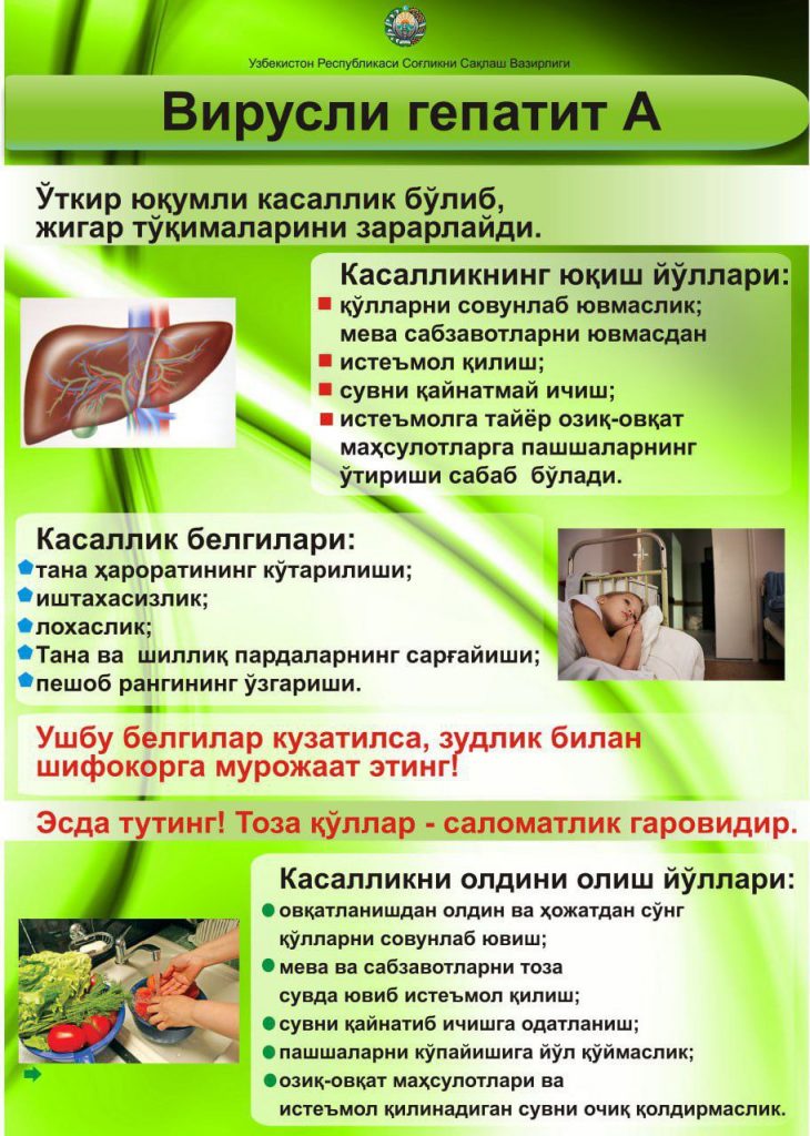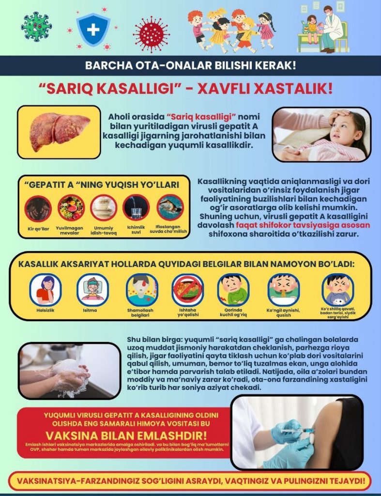 ❓Asosan bolalar o’rtasida uchraydigan virusli gepatit A kasalligi qay tarzda yuqadi va uni oldini olish choralari qanday?