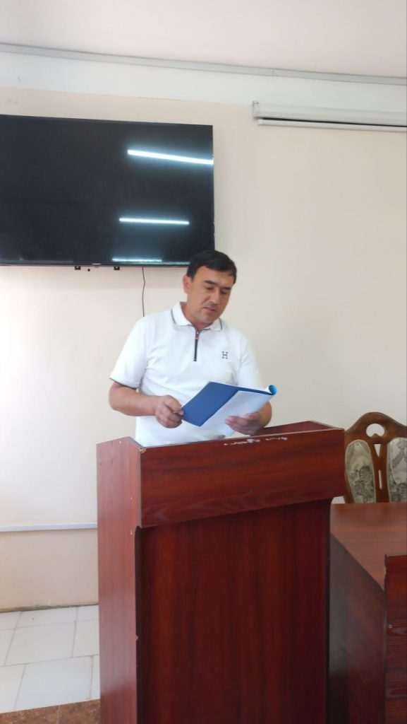 Sherobod tuman sanepid bo’limi boshlig’i tomonidan Sanepid qo’mitasining 2025-yil 5-may «Axolining sanitariya-epidemiologik osoyishtaligi bilan bog’liq muammoli masalalarni hal etishning yangicha mahallabay ishlash tizimini takomillashtirish to’g’risida»gi № 31-sonli buyrug’i va O‘zbekiston Respublikasi Prezidentining 2025-yil 30-yanvardagi PF-16-son “O‘zbekiston— 2030” strategiyasini “Atrof-muhitni asrash va “yashil iqtisodiyot”yilida amalga oshirishga oid davlat dasturi to‘g‘risida”gi Farmoni va O‘zbekiston Respublikasi Vazirlar Mahkamasining “Sog‘liqni saqlash va ta’lim tashkilotlarida ichimlik suvi hamda sanitariya-gigiyena infratuzilmasini kengaytirishgaqaratilgan “Toza qo‘llar” dasturini amalga oshirish chora-tadbirlari to‘g‘risida” 2025-yil 6-maydagi 297-son qaroriviloyat SEO va JSB ning 2025 yil 14-maydagi №42-T sonli buyrug’ini o’qib barcha xodimlarga tanishtirib chiqildi.