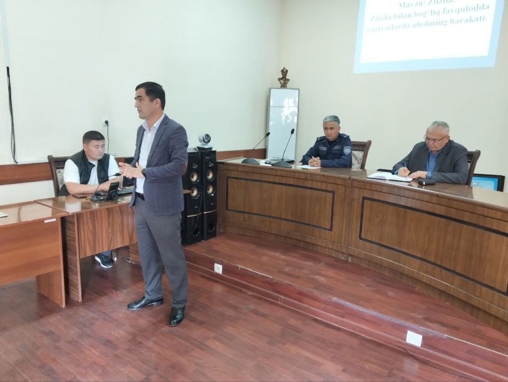 Boshqarma hodimlari ishtirokida zilzila bilan bog’liq favqulodda vaziyatlarda to’g’ri harakat qilish va uning oqibatlarini bartaraf etish bo’yicha viloyat Favqulotda vaziyatlar boshqarmasi xodimlari tomonidan Viloyat sanepid boshqarma majlislar zalida o‘quv seminari bo‘lib o‘tdi.