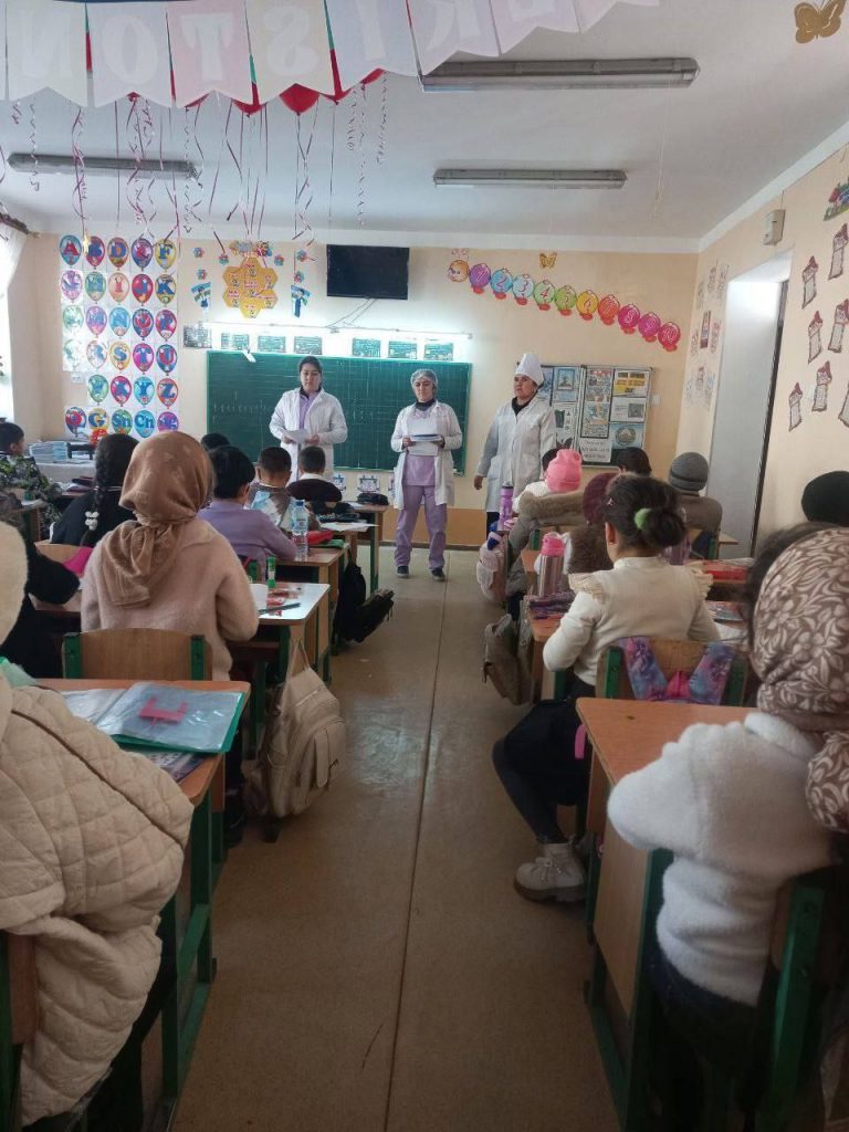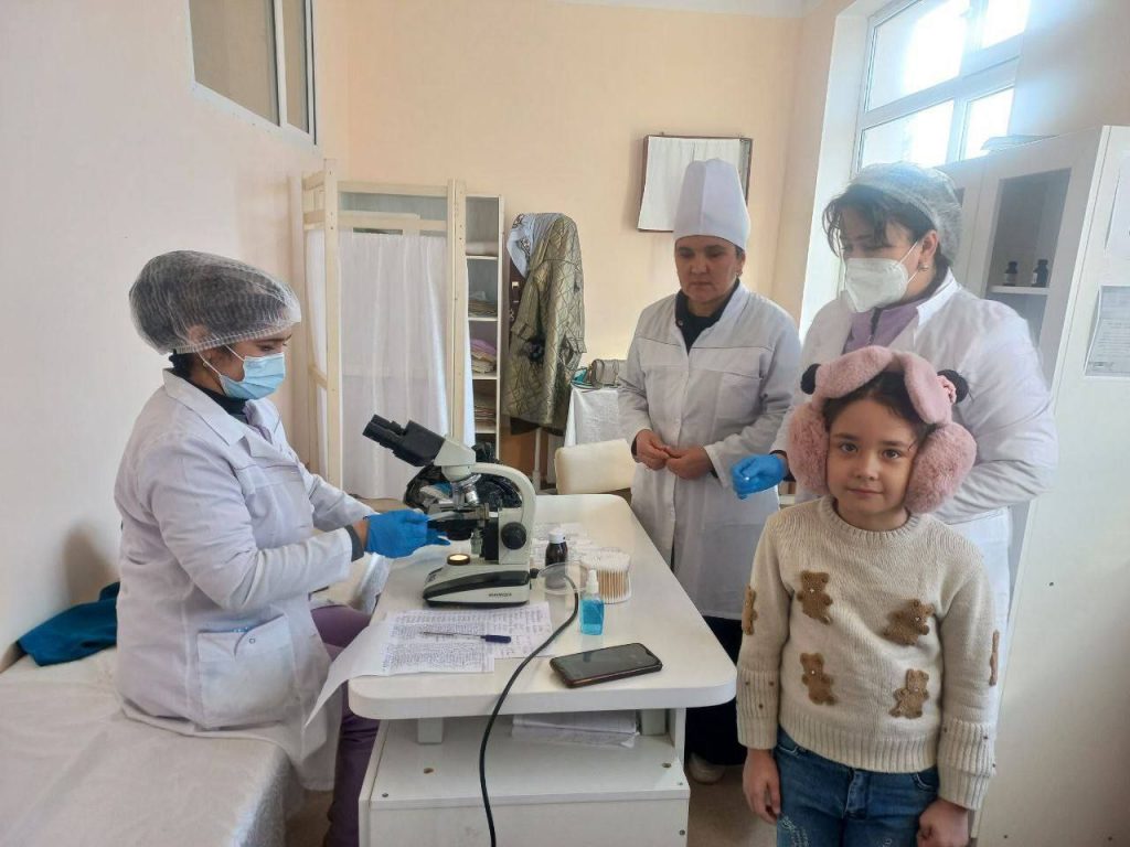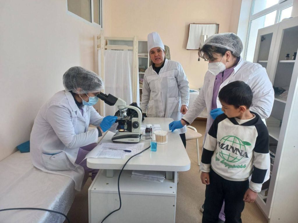 Shuningdek, maktabning 1–4-sinf o‘quvchilari orasida gijja tuxumlariga qarshi reja asosidagi tibbiy tekshiruvlar o‘tkazildi. Barcha jarayonlar belgilangan sanitariya-gigiyena talablariga to‘liq rioya etilgan holda amalga oshirildi.